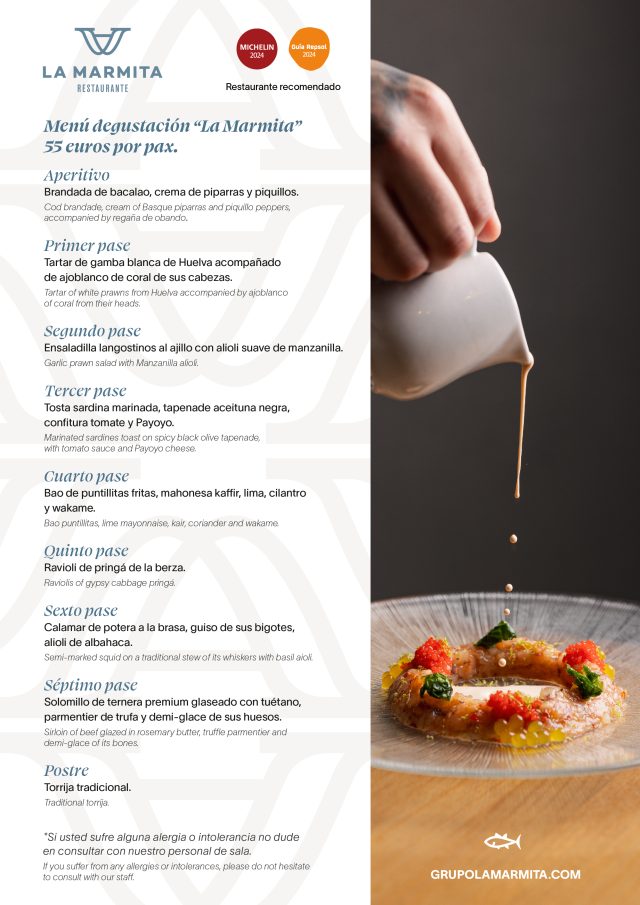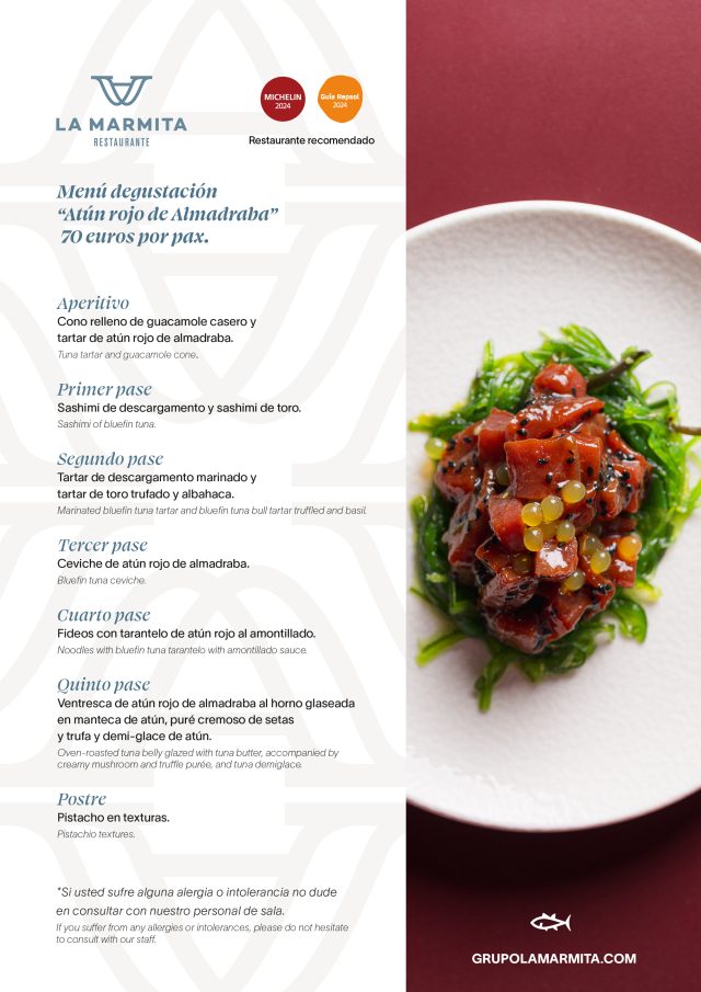 MENÚS DEGUSTACIÓN EN LA MARMITA CÁDIZ MENÚ DEGUSTACIÓN «LA MARMITA» 55,00 € MENÚ DEGUSTACIÓN «ATÚN ROJO DE ALMADRABA» 70,00 €